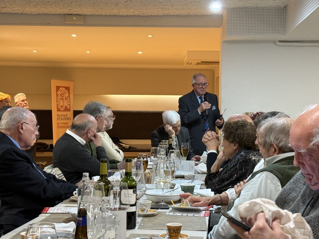 Han sido diversas las llamadas a los Mayores. Nos invitó el Prf. Ballester-Olmos al Casino de Agricultura: Octubre 24. Su conferencia HISTORIA DEL NOMBRE DE VALENCIA DEL CID. Interesante y buena presencia nuestra, a salón completo. L’Associació d’Escritors también nos llamó a les Jornades en el Ateneo. El tema L`erótica valenciana, la primera semana de noviembre, no tuvo mucho gancho; luego resultó para los incombustibles, una história de Valéncia, importante como documento y también un humor ben valencià frente a tabús mal resueltos.